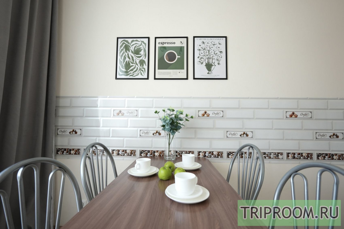 ✔ Просторная стильная кухня оборудована современным мебельным гарнитуром, всей необходимой бытовой техникой, а также полным комплектом посуды на 4 персоны для приготовления полноценного домашнего рациона. Уютная обеденная зона располагает к приятной трапезе и душевному чаепитию.