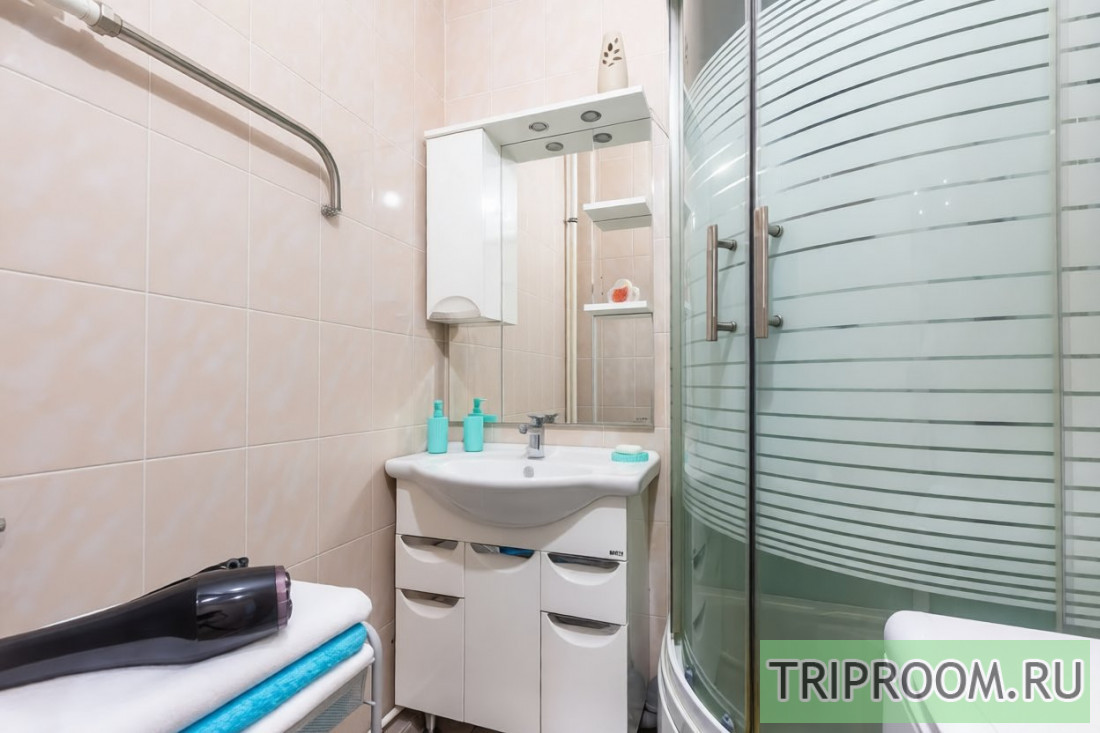 - Раздельный санузел оснащен белоснежной сантехникой, сияющей чистотой. Установлена современная душевая кабина. Присутствует все необходимое для личного ухода: от стиральной машины-автомат до фена и мелочей.